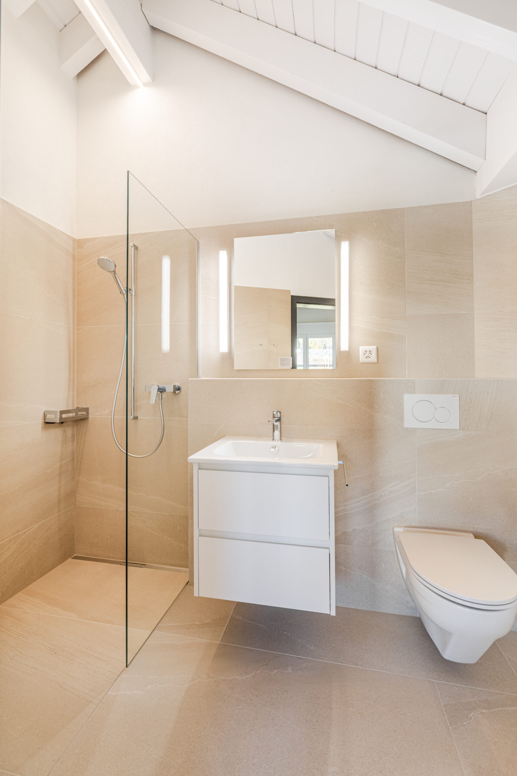 Durch die Kombination aus baulichen Anpassungen, modernen Materialien und einem durchdachten Lichtkonzept entstand eine zeitgemässe Wohnlösung, die Design, Funktionalität und Komfort ideal miteinander verbindet.